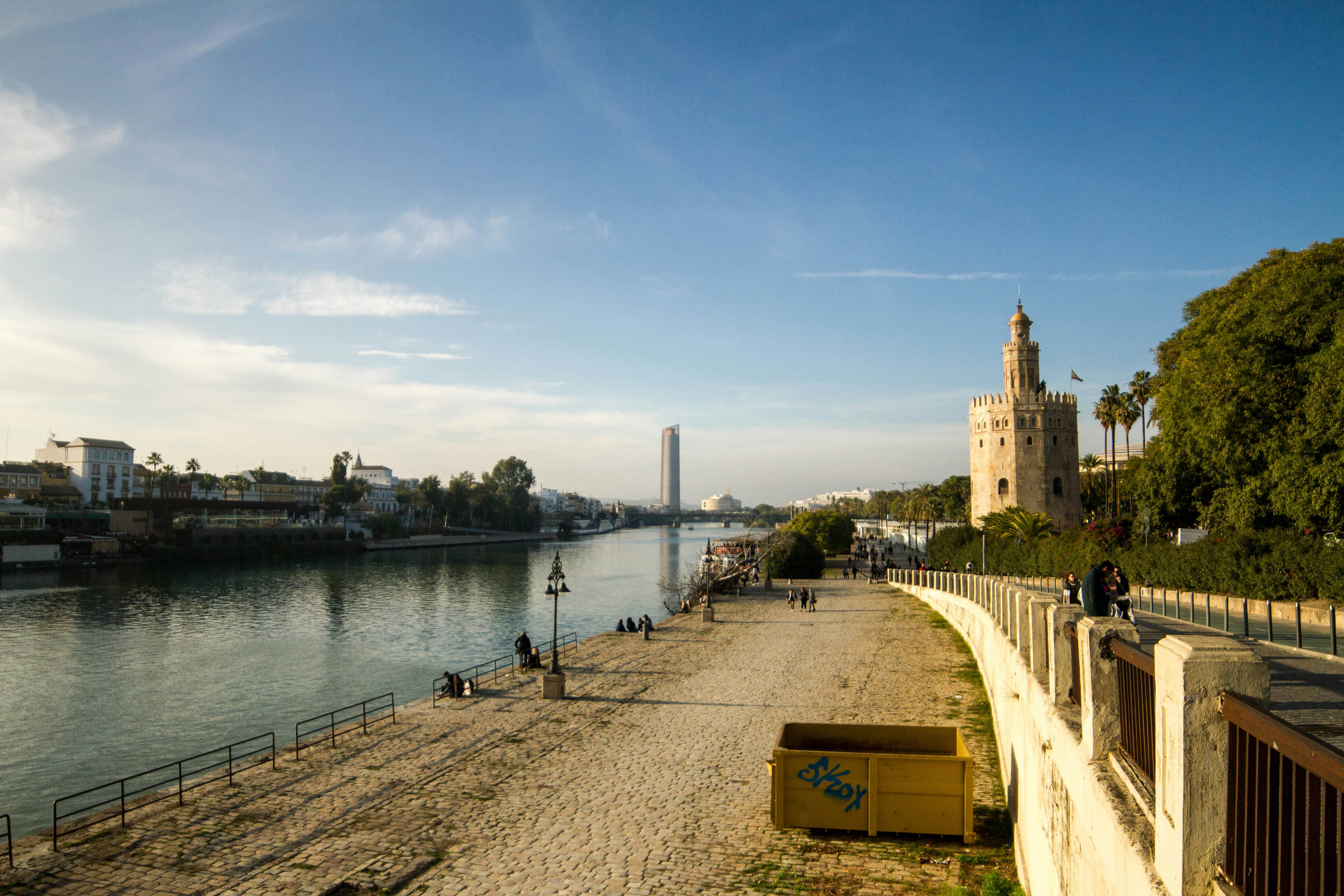 In Seville, the river comes alive with a variety of activities. Cruise rides are popular, providing a unique vantage point to appreciate Seville's enchanting skyline, including landmarks like Torre del Oro, Triana district, and the Maestranza bullring. As the sun sets, the riverbanks are transformed into a lively social hub with locals and tourists alike enjoying tapas in riverside restaurants or simply strolling along the charming pathways.